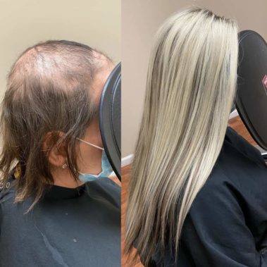 Our stylists have a combined 90 years of experience. Each stylist will make their recommendations based not only on your lifestyle, the cause of your thinning hair or hair loss (permanent or temporary), but will also analyze hair color, texture and density.